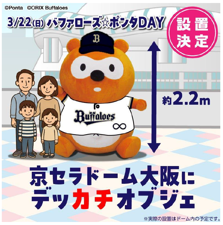 バファローズ☆ポンタ デッカチオブジェをドーム内に設置します。ご観覧には試合チケットが必要です。