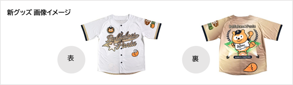 「バファローズ☆ポンタ 人間用ベースボールシャツ メモリアルゴールド」を販売します。
