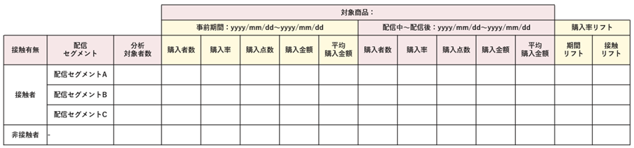 LMが広告主企業に対して提供するデータを活用いただくことで、配信接触者と非接触者の「配信前後」における購買行動を比較できます。また、同一プロモーションにおいて、異なるセグメントに配信した場合、それぞれの購買効果の比較も可能です。