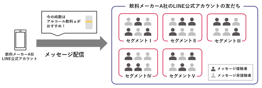 配信対象者 :A社LINE公式アカウントの友だち(5つのセグメントに分類)